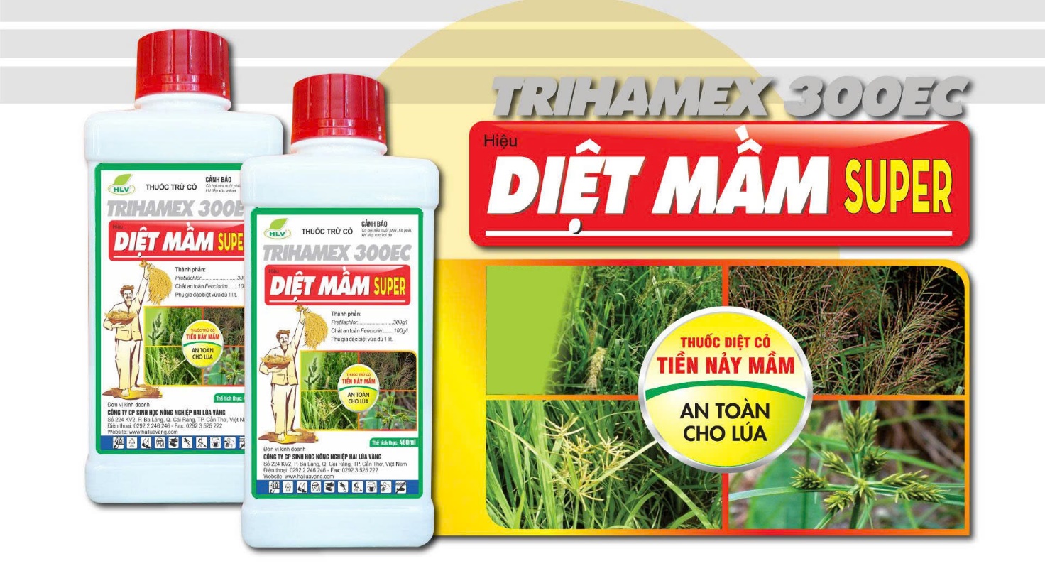 Diệt Mầm Super 300EC chứa Pretilachlor giúp kiểm soát cỏ lá rộng, cỏ lác, lúa cỏ, cỏ lồng vực, cỏ chát, cỏ chỉ. Sản phẩm còn chứa Fenclorim giúp bảo vệ mầm lúa, cho hiệu lực kéo dài.