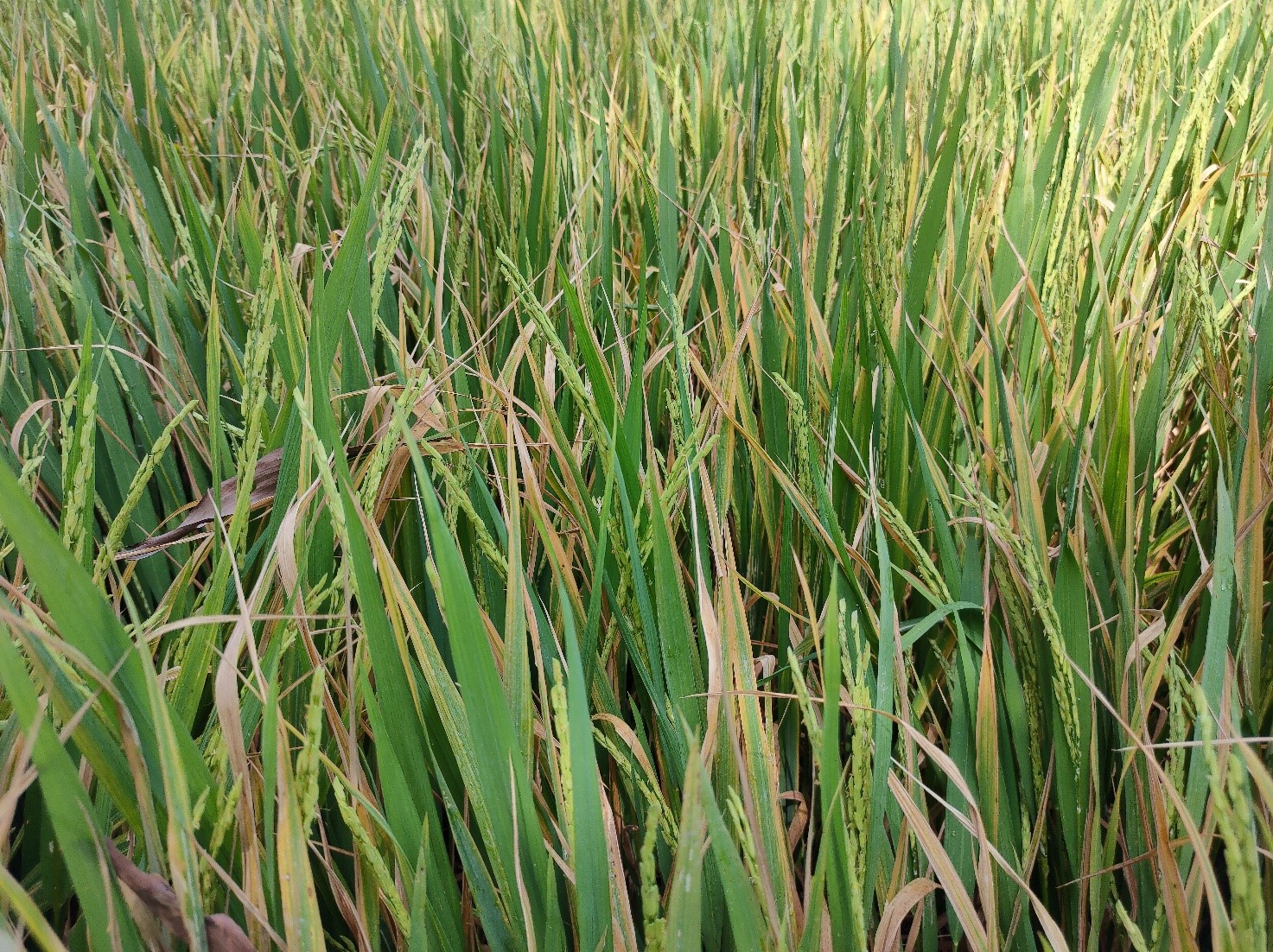 Hình 2. Ruộng lúa bị vàng lá chín sớm